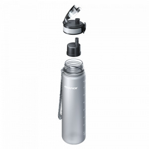 Бутылка объёмом 0.8 л — уже не просто «пить на ходу», а полноценный запас чистой воды на несколько часов прогулки, тренировки, поездки. Матовое бархатистое покрытие дарит приятные тактильные ощущения и позволяет бутылке не выскользнуть из руки, даже когда она мокрая. Встроенный клапан в крышке надёжно блокирует протекание, в каком бы положении бутылка ни находилась в рюкзаке или сумке.